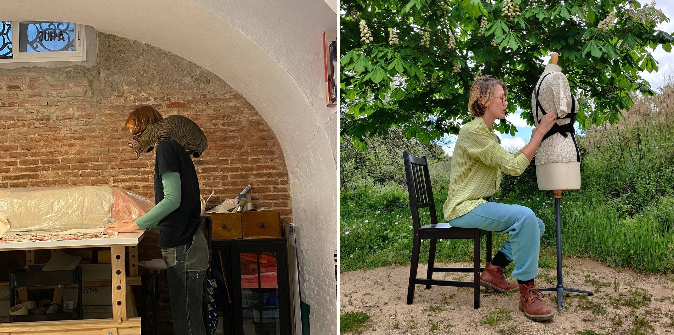 Every semester my fashion/media students at the Academy of Art University introduce me to a new cohort of “influencers” as we discuss social media impact on creativity and wellness (both at the individual and collective levels). Every time I “discover” someone new to be wow-ed by. A Hug was one such discovery. Recently, I collaborated with my students to interview designer / textile sculptor Alex Henkes, the passionate mastermind behind this terrific upcycling label based in Madrid, Spain.